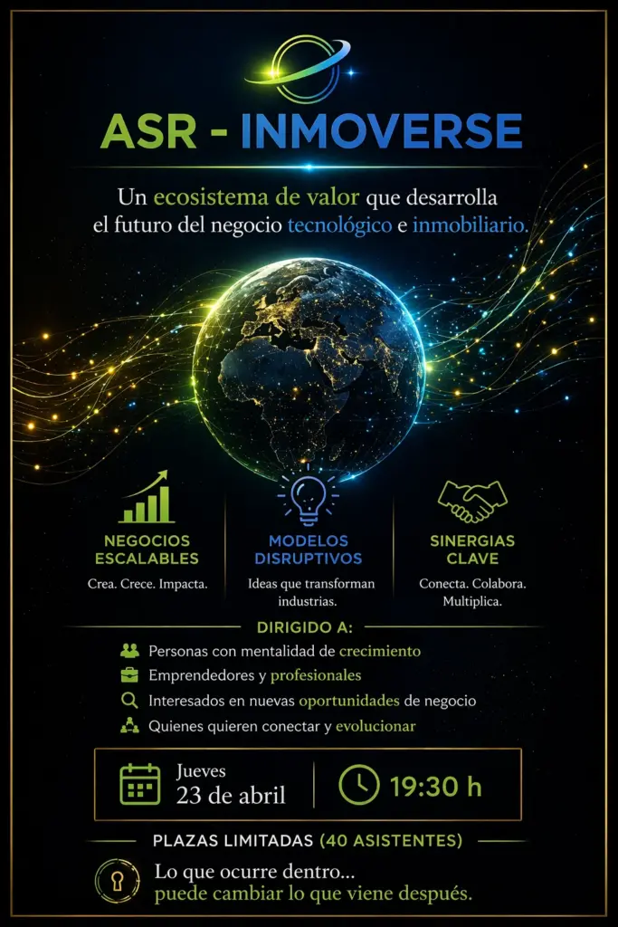 Dirigido a personas con mentalidad de crecimiento, emprendedores, profesionales, interesados en nuevas oportunidades de negocio y personas que quieran conectar y evolucionar. Un ecosistema de valor que desarrolla el futuro del negocio tecnológico e inmobiliario.