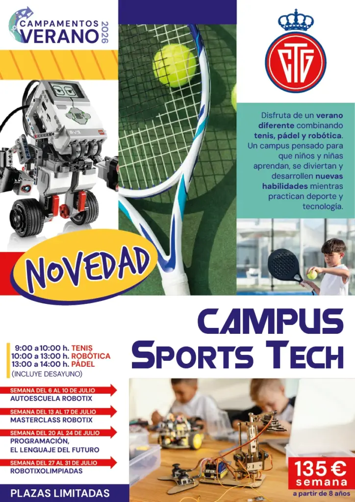 Este año, además, contamos con una gran novedad: el CAMPUS SPORTS TECH, una propuesta diferente y muy especial que combina tenis, pádel y robótica, uniendo deporte y tecnología en una experiencia divertida, educativa e innovadora.