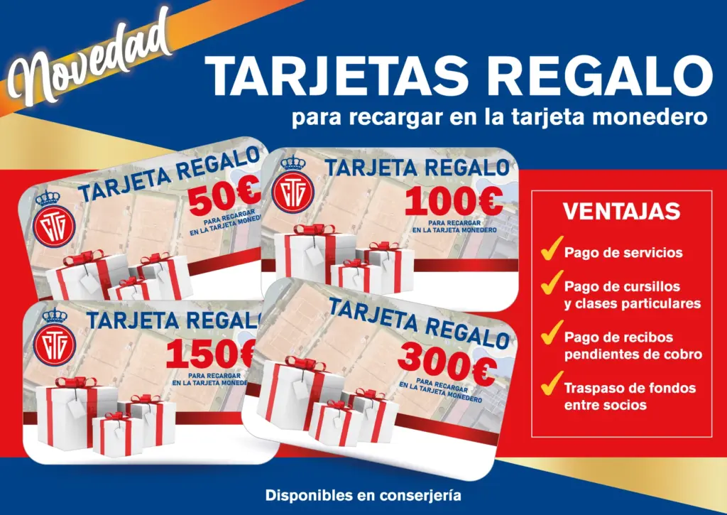 Disponemos de la Nueva Tarjeta Regalo del Club, permite realizar recargas de 50, 100, 150 y 300 euros, convirtiéndose en un detalle perfecto para quienes disfrutan del deporte.